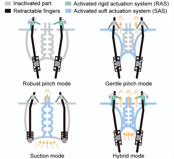 这项研究为机器人夹持器的发展提供了新思路,特别是在多模态协同和抓取多样性方面,有望加速机器人在日常生活、工业生产和水下场景中的多样化应用。
