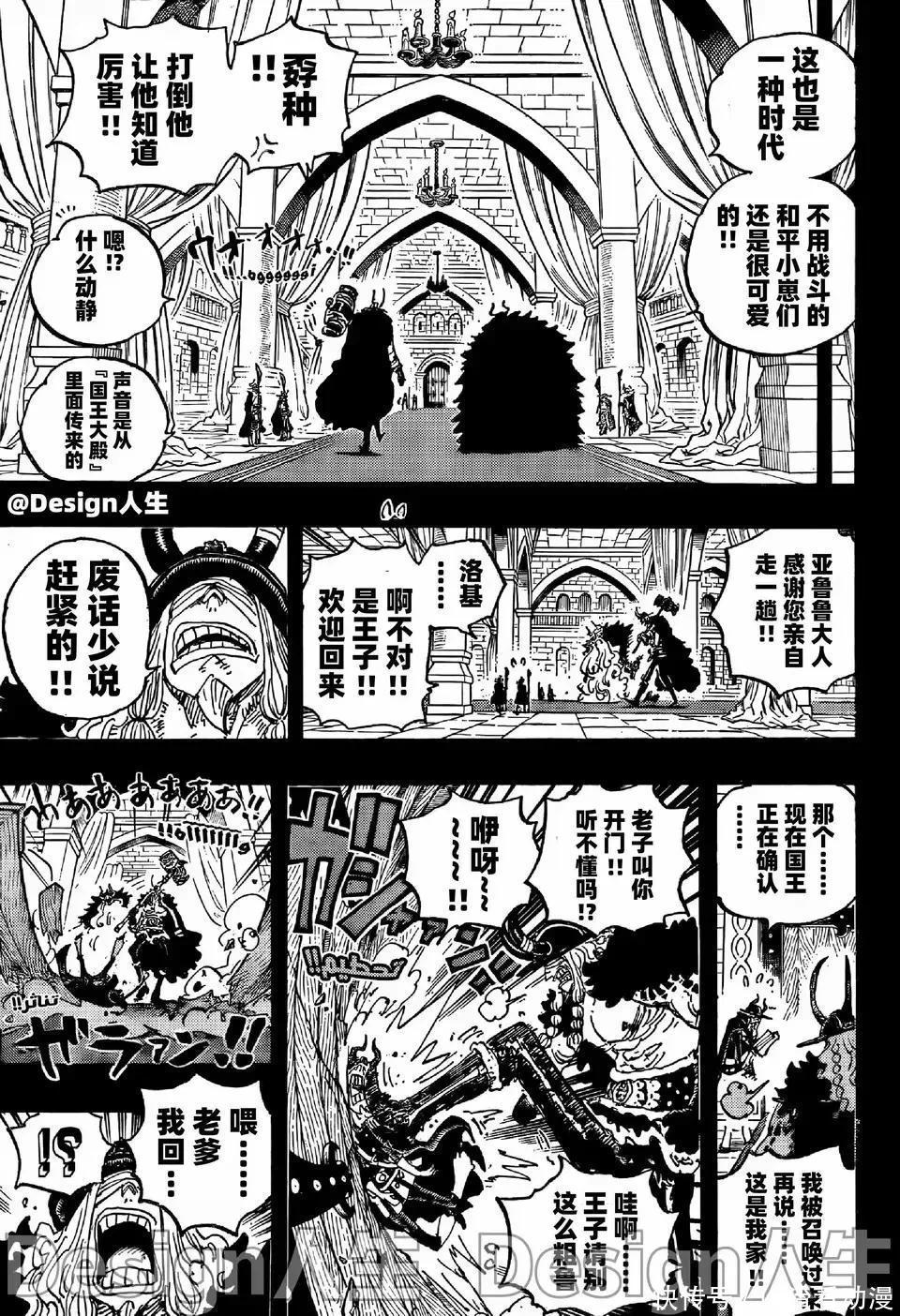 他们即将进入大殿里,就被一个士兵挡住,洛基王子一脚踢飞他,大门瞬间被踢开。等洛基王子看清楚里面发生的事情,他们都震惊了,十几个士兵刺穿了国王的身体,国王变成十分巨大,看起来是被恶魔化了。红发香克斯和贾巴在一起泡温泉,他们聊到了小丑巴基,本来他想和小丑巴基一起组建海贼团的,结果被拒绝了。