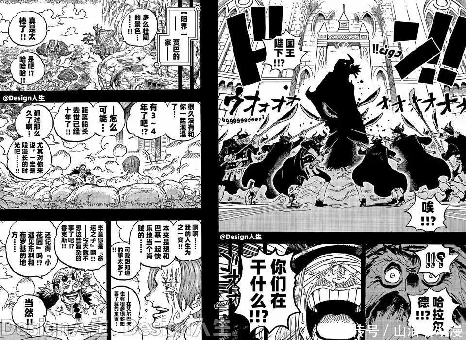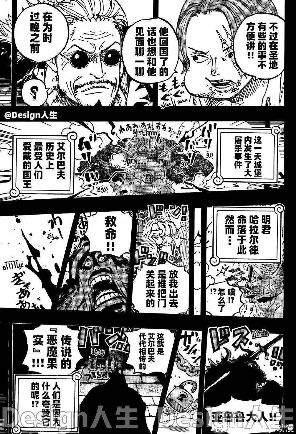 贾巴说红发香克斯是命运之子,他手臂上有神之骑士团的印记,看来红发香克斯是神之骑士团,他在圣地跟巨人族的国王认识,两人聊了很多,有些事情不能在圣地聊,所以红发来到巨人族,想要找国王说一些事情,里普利已经生下孩子了。